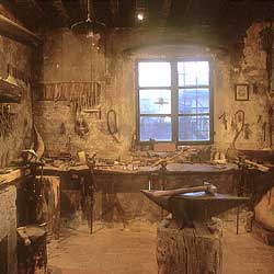 The "Museo dei Ferri Taglienti" is housed in the prestigious and recently-restored Palazzo dei Vicari, and focuses on the history of the knife in human activity, the centres of production in Italy, and the knife-makers and knives of Scarperia. It is also possible to see a live demonstration of the construction of a knife. In the nearby Via Solferino there is the ancient Bottega del Coltellinaio where, together with period tools, there is also an untouched smoke-permeated working environment. It almost seems possible to hear carefully judged blows falling onto hot iron that has just come straight from the forge; or to see the sputafuoco ("fire-spitter") at work, whetstone with a strip of powder-coated leather on top that was used to polish the blades, and which produced sparks when it came in contact with the iron; or to see the up-and-down movement of the sartuzza that was used to bore holes in horn handles. Made completely rigid by the morchia (coal dust mixed with water) which has impregnated it for years, there is an old felt cap which was part of the orso (a wheel of rags), which still today could put a shine onto the horn handle of a beautiful knife from Scarperia.