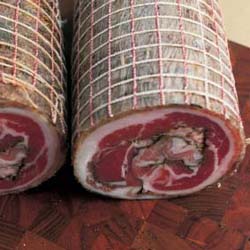La pancetta arrotolata è un grosso salume di forma cilindrica