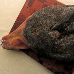 legno.Dopo il riposo, la spalla viene posta a stagionare su delle impalcature