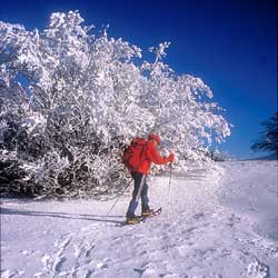 Il tratto finale del sentiero che sbuca proprio in prossimità della croce di legno, in cima al Monte Falterona (1654 m) appare abbastanza difficile a causa del peso della neve che, piegando gli alberelli dell'inopportuna piantata sommitale d'abete, rende il percorso penetrabile solo con fatica. Goduto il paesaggio sull'intera conca alluvionale del Mugello, si prende a sinistra per scendere ad uno stradello sul versante casentinese che presto risale fino alla panoramica cima del Monte Falco (1658 m). Puntando decisamente a Sud si continua lungo la displuviale per raggiungere l'arrivo di uno ski-lift relativo agli unici impianti sciistici della zona e aggirare successivamente una stazione meteo dell'Aeronautica militare.