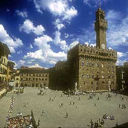 enter the Piazza Signoria. There is a little girl standing in the centre