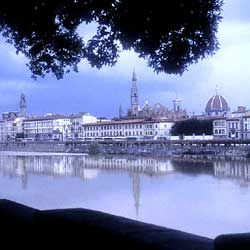 Across the piazza, through the darkness of the Uffizi and out to the lights of the Lugarno. It is empty of traffic both human and mechanical. The river is high and running quickly. The sound of the moving water rushing past the bridge washes away the centuries of urban growth and development. It is an old sound that has always belonged here.
